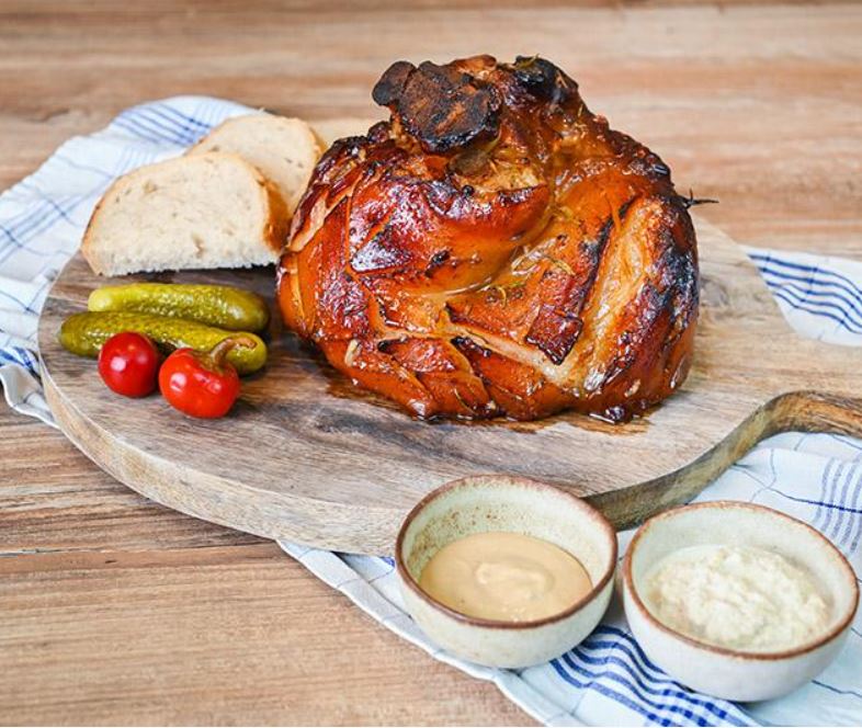 Ingrediente: ciolan de porc, sare, usturoi, boabe de mustar, cimbru, piper, foi de dafin